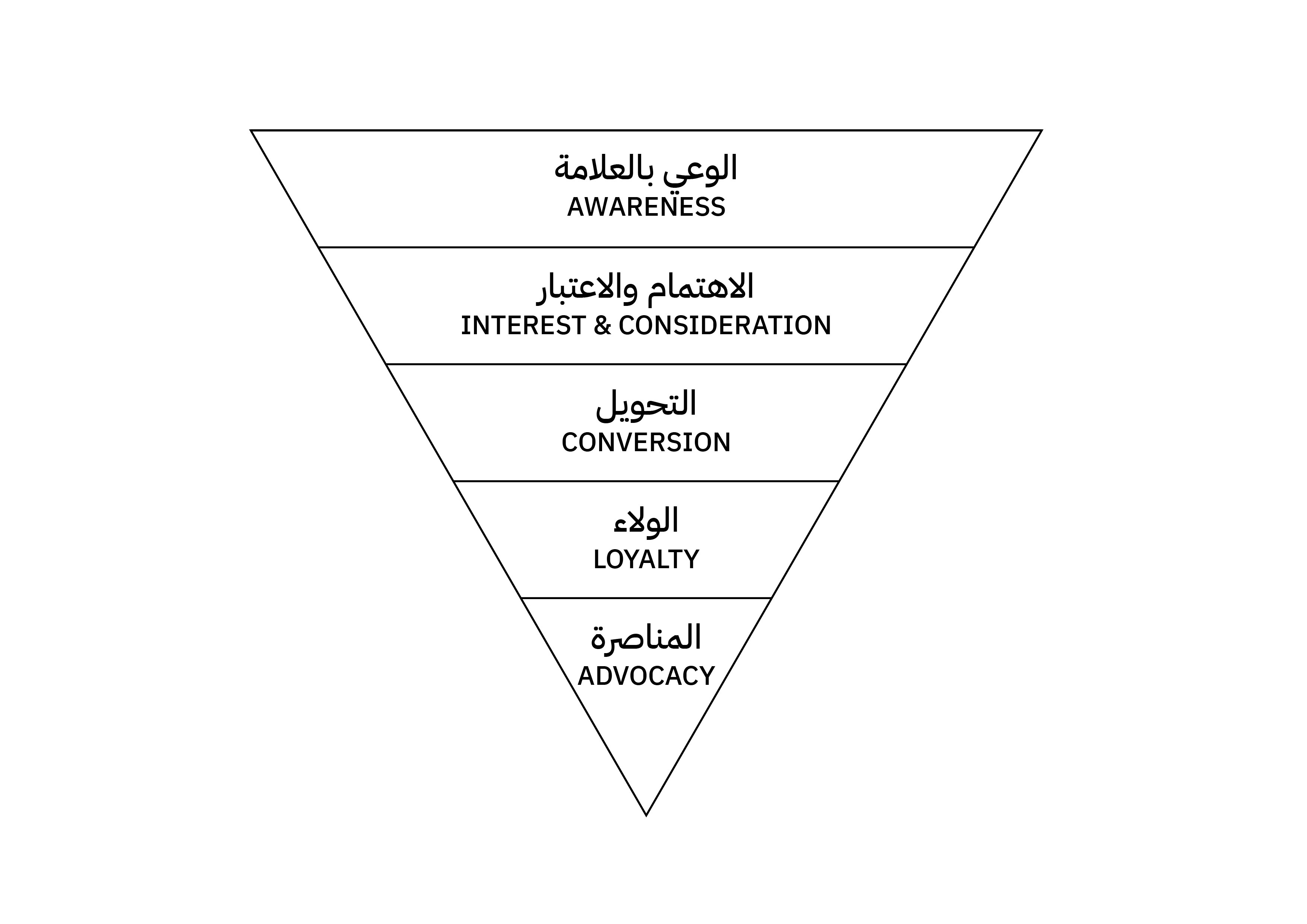 هذا هرم رحلة العميل مع أي علامة. محطة التحويل يحدث خلالها البيع، ولكن لك القرار اذا اردت بناء الولاء مع ذلك العميل ثم يصبح بعد ذلك سفيرًا لك.