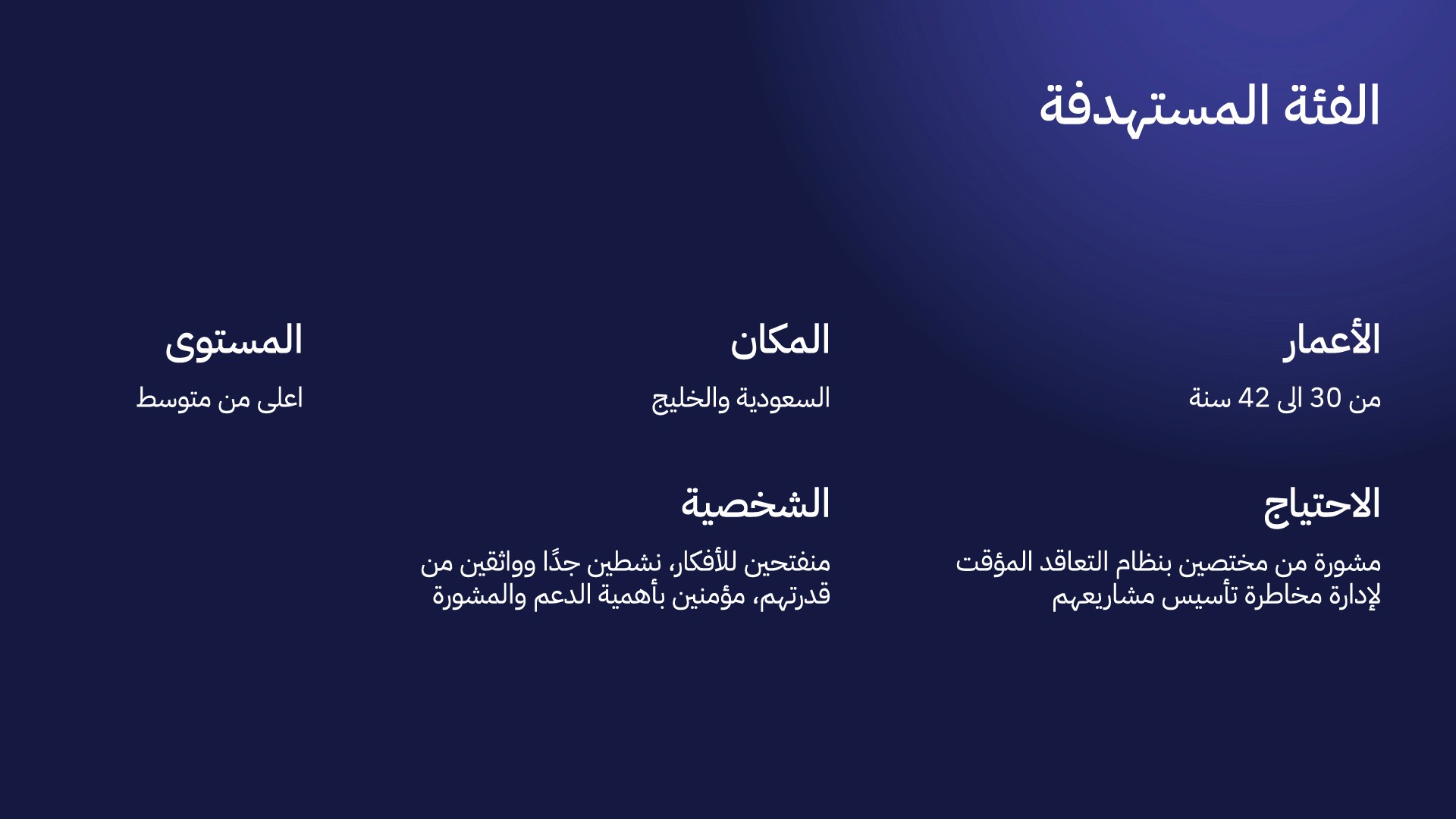 في ظل تزايد الشركات الناشئة في المنطقة، هناك طلب عالي على المختصين في المجالات القانونية والمحاسبية وغيرها من المجالات ذات الاحتياج في مرحلة بناء المشروع، من هنا وُلدت فكرة منصة تربط المؤسسين بمختصين مستقلّين لتسهّل عليهم رحلة بناء مشاريعهم.