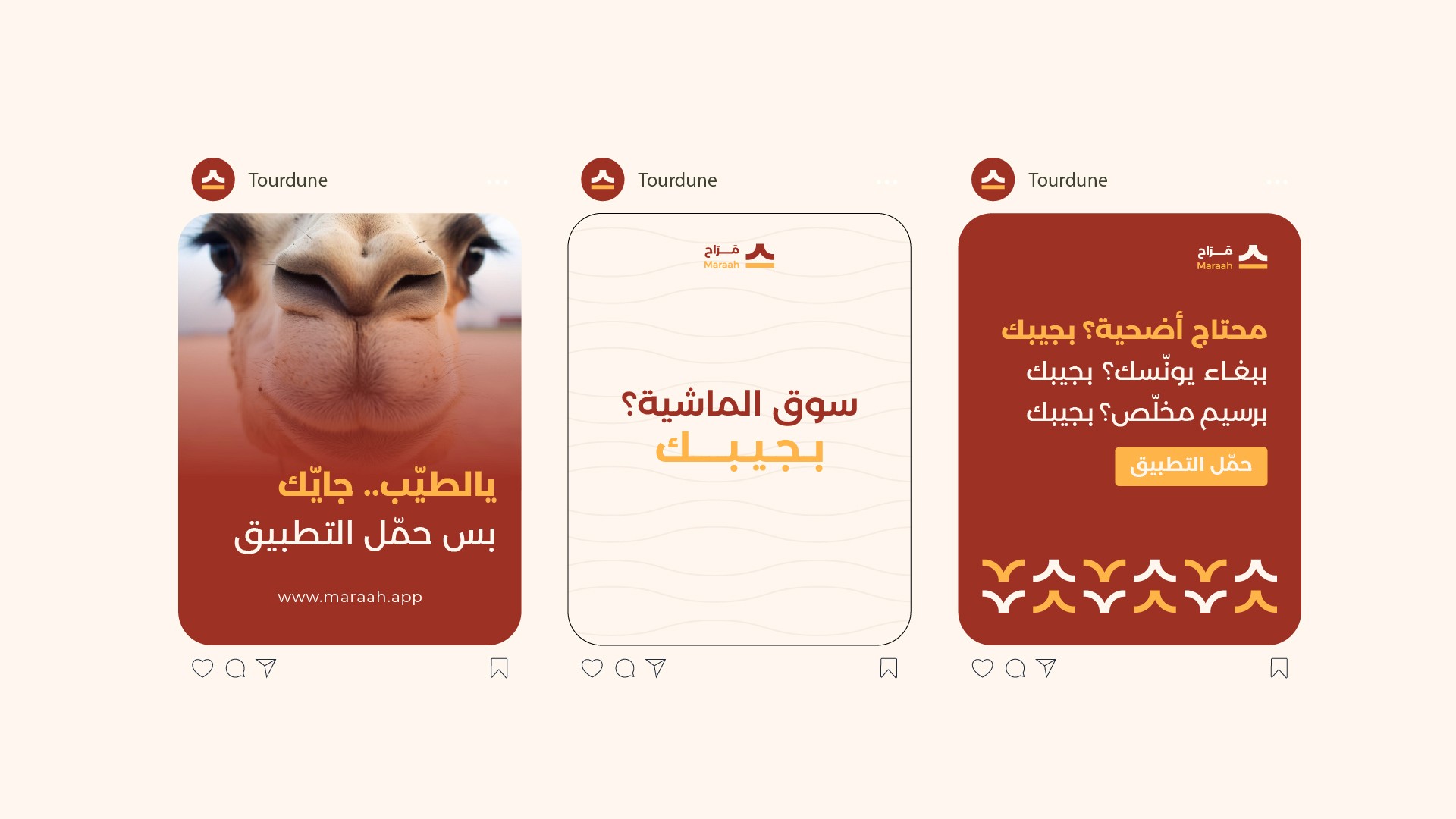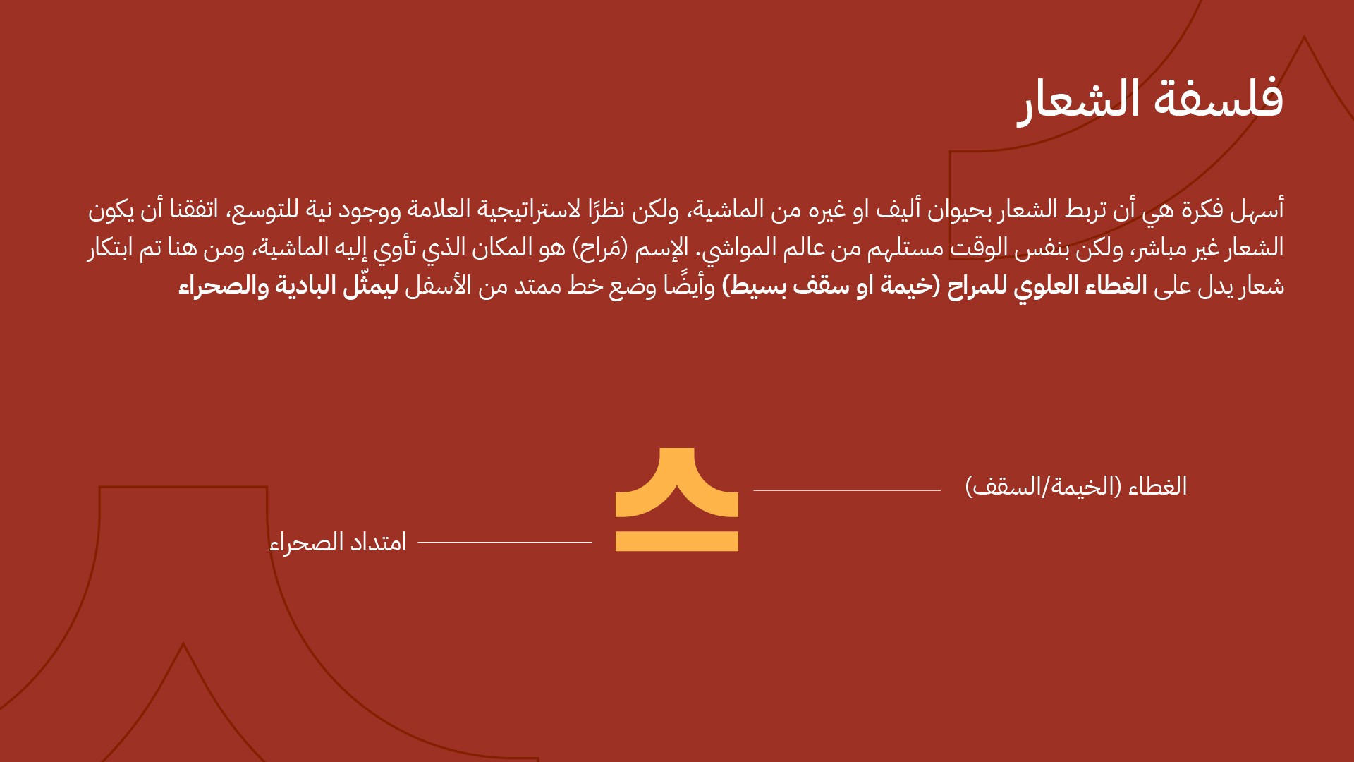 قمت بتحليل سوق المواشي وفهم فكرة المشروع، اتضح ان مَراح لديها نية توسّع، لذلك حرصنا على استلهام افكار الشعار والهوية بحرص وألا ترتبط مباشرة بشكل المواشي، حددت التوجّه الفني المناسب وقمت مع مصمم مُعاون ببناء الشعار، ثم استكملت بناء الهوية